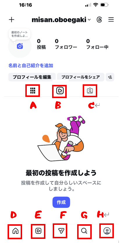 D:フィード(投稿を見る)